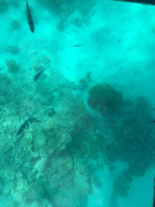 除了浮潜外,这里还有乘坐玻璃底船的项目。玻璃底船漂浮在水面上,海水清澈见底。透过船底的玻璃,海底那些五彩斑斓的珊瑚和鱼群清晰可见。如果你足够幸运的话,或许还能看到大海龟。
